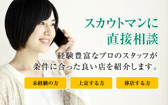 プロのスタッフが面接から体験入店、退店までサポートする「スカウトマンに直接相談」とを併せ持つ求人サイトです。
